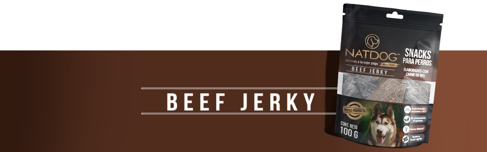 Snack para perros NATDOG: Elaborados con proteína natural Beef Jerky (Carne de res) horneadas y deshidratadas a 76ºC, garantizando los sabores y aromas para darle una gran experiencia a tu mejor amigo.