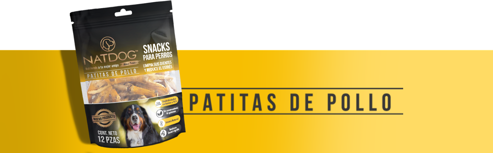 Snack para perros NATDOG: Elaborados con proteína natural patitas de pollo horneadas y deshidratadas a 76ºC, garantizando los sabores y aromas para darle una gran experiencia a tu mejor amigo.